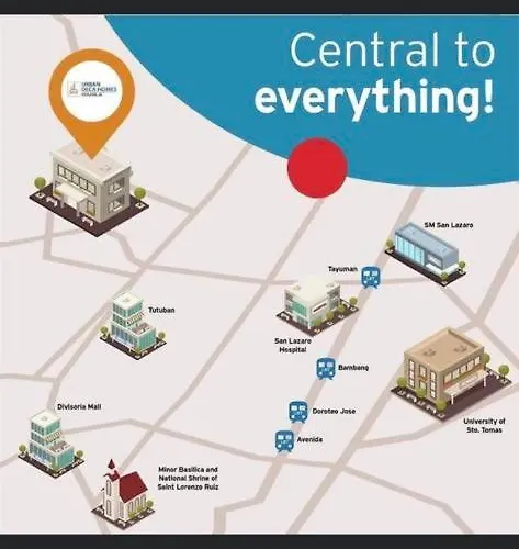 Als u in dit pension logeert, bent u binnen 3 km van Centraal postkantoor van en binnen 3,1 km van de Kathedraal van Manilla. De Divisoria-markt ligt ook op 25 minuten wandelen van dit hotel. Het gebied beschikt over een aantal winkels, zoals Plaza Miranda op 3,2 km van Staycation - Dela Fuente Manilla. Capulong bushalte is binnen 5 minuten lopen vandaan.